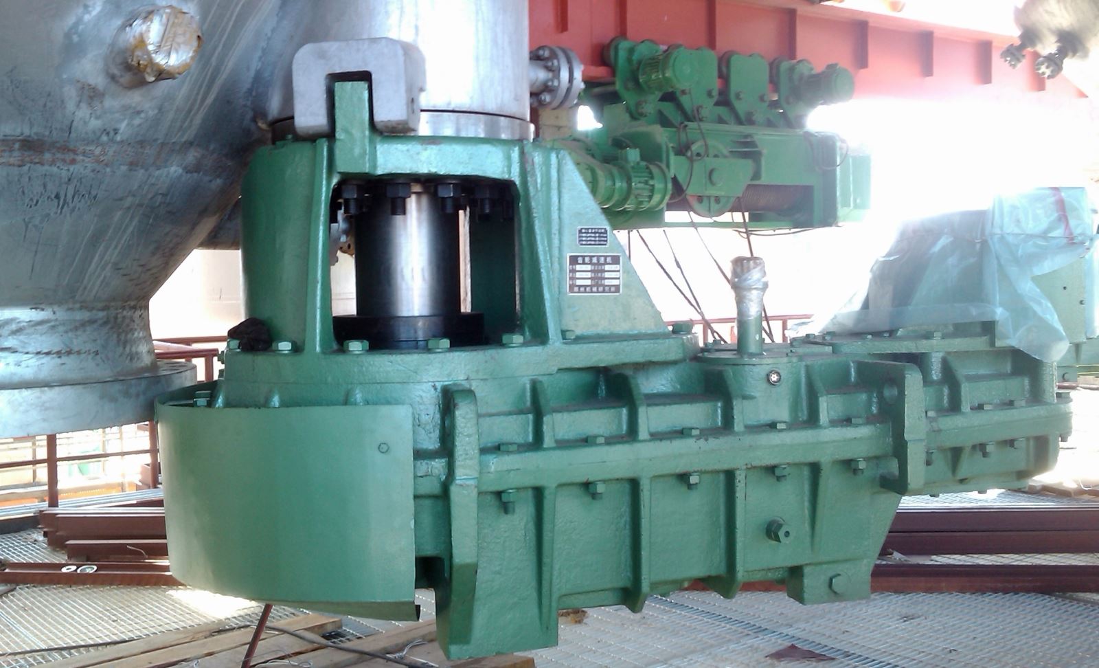 海洋鉆井平臺齒輪傳動(dòng)裝置,2004年取得了ABS和CCS船檢證書,先后為原北方鉆井公司“渤海8號”、原南方鉆井公司“南海1號”及“南海4號”等平臺開發(fā)生產(chǎn)了升降傳動(dòng)裝置和海水泵塔等,2011年為武漢船用機(jī)械有限公司配套研制生產(chǎn)了“自升式海洋鉆井平臺提升裝置”。